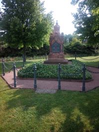 1. und 2. Weltkrieges auflisten. Eine Absperrung umgibt das Denkmal.