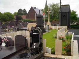 Auf der kleinen britischen Kriegsgräberstätte auf dem Ortsfriedhof von Elouges sind drei deutsche Gefallene eingebettet. Einer von ihnen ist unbekannt. Zusätzliche Informationen in Blau vom Volksbund Deutsche Kriegsgräberfürsorge: www.volksbund.de/graebersuche
