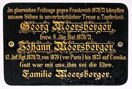Im glorreichen Feldzuge gegen Frankreich 1870/71 kämpften unsere Söhne in unverbrüchlicher Treue u. Tapferkeit. (Namen) Gott war mit uns, ihm sei die Ehre. Familie Moersberger.