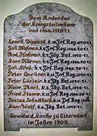 Dem Andenken der Kriegsteilnehmer von 1866. 1870-71. (Namen) gewidm. d. Kirche zu Eltersdorf im Jahre 1909