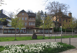 Auf der Grünfläche vor dem Landratsamt steht ein Naturstein mit Inschrift.