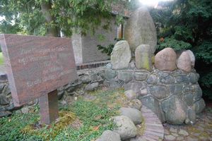 Denkmal für die Gefallenen des 1. Weltkriegs vor der Kirchenmauer, Feldsteinsockel mit aufgesetztem Findling mit Widmung, umrandet von Feldsteinen mit den Namen der Gefallenen, später seitlich angebrachte allgemeine Tafel für die Gefallenen des 2. Weltkriegs, alles umrandet von niedriger Mauer; Gedenktafeln in der Kirche; Ehrenliste für die Gefallenen des 1. Weltkriegs; Gedenken auf Familiengräbern; KZ-Opfer-Grab