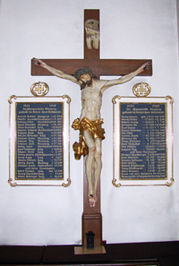 In der katholischen Kirche von Glosbach sind zu beiden Seiten des Gekreuzigten Gedenktafeln für den