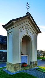 Wandplakette in der Kapelle am Hauptplatz.