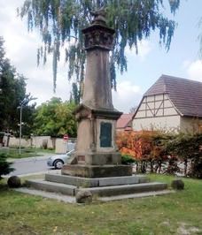 Unterbau mit bronzenen Namenstafeln, darüber quadratische Säule.