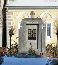 und gekrönt mit Kreuz am Dorfplatz.