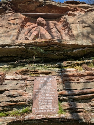 Denkmal für die Gefallenen des 1. Weltkriegs. In die Felswand des Roda Tales
