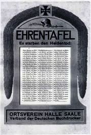 EHREN-TAFEL Es starben den Heldentod: (Namen) ORTSVEREIEN HALLE SAALE Verband der Deutschen Buchdrucker