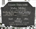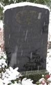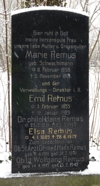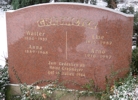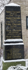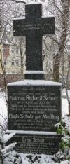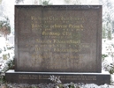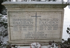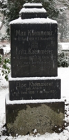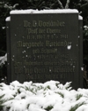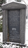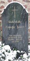 Es muß sich um ein Gedenken an einen Familienangehörigen handeln, denn in der Mitte des großen Grabsteins sieht man das Eiserne Kreuz und darüber einen Stahlhelm und Dolch. Leider ist nicht eindeutig zu erkennen, an wen gedacht wird. Die Inschrift an oberen Rand des Grabsteines könnte „Familie Franz Traeger“ lauten.