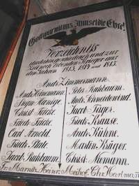 Beitrag von: Wolfgang KW Garz (1. Weltkrieg; Familiengräber) / R. Krukenberg (www.kriegsopfergedenken.de) (Kirche: 1813-15; 1866-71; VDK-Daten)