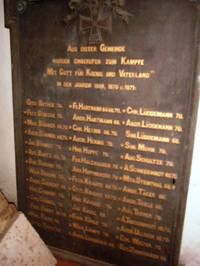 Tafel 1866-1871: Aus dieser Gemeinde wurden einberufen zum Kampfe „Mit Gott für König und