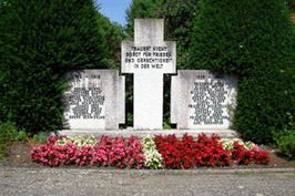Das dreiteilige Steindenkmal steht in der Nähe der evangelisch-lutherischen Kirche St. Johannes. Das zentrale Kreuz trägt die Inschrift. Die beiden nebenstehenden, als Tatzenkreuz stilisierten Steine tragen die Namen der Gefallenen und Vermissten.
