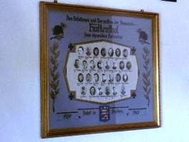 Vor der evang. Kirche Güttersbach steht ein Steinobelisk auf einer viereckigen Steinsäule (70-71), darauf ein Gefallener aus Hüttenthal. In der Aussegnungshalle befindet sich eine Bildertafel.