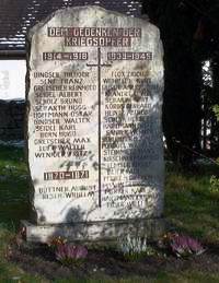 Das Denkmal steht neben dem Eingang der ev.-luth. Dorfkirche von Ammerbach und