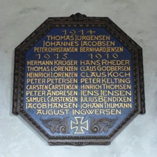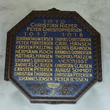 Zwei achteckige Namentafeln an der Wand der Kirche von Joldelund