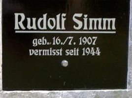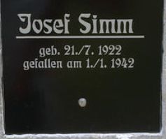 Josef Simm 21./7.1922 gefallen am 1./1.1942 Rudolf Simm 16./7.1907 vermisst seit 1944