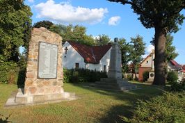 2. Weltkrieg Denkmal aus Feldsteinen mit Gedenktafel, außerdem zum 2. Weltkrieg: gemauertes Denkmal aus Feldsteinen mit Tafel; nur Vor- und