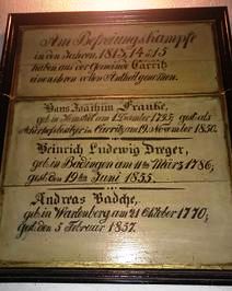 Gedenkstein für Kriegsopfer; Gedenktafeln in der Kirche