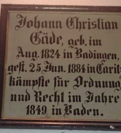 gest. 25. Jun.1884 in Caritz kämpfte für Ordnung und Recht im Jahre 1849 in Baden.