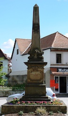 Text in der „Liste_der_Kulturdenkmäler_in_Kirchheimbolanden“: „Kriegerdenkmal 1870/71, gründerzeitlicher Obelisk, 1880 von J. Zepp“