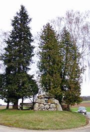 Kleinhül, Markt Wonsees, Landkreis Kulmbach, Oberfranken, BayernPLZ 96197 Das aus Findlingen gestaltete Denkmal befindet sich am Ortsausgang auf einem kleinen Rasenhügel.