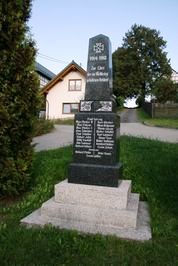 Stele unmittelbar neben der Dorfstraße mitten im Ort