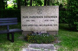 ZUM EHRENDEN GEDENKEN1914 – 1918 1939 – 1945EUER OPFER SOLL UNS MAHNUNG SEIN