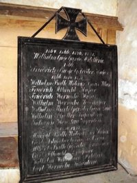 Beitrag von: Wolfgang KW Garz (2010 Denkmal) / R. Krukenberg (www.kriegsopfergedenken.de) (Kirche: Gedenktafeln; Soldatengräber; VDK-Daten)
