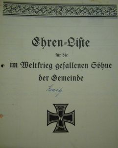 Ehren-Liste für die im Weltkrieg gefallenen Söhne der Gemeinde