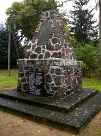 Denkmal für die Gefallenen des 1. und 2. Weltkriegs in Form einer Feldsteinpyramide mit angebrachten Namenstafeln