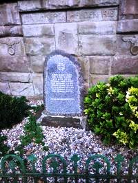 Locker behauener Granitblock an der aus Buckelquadern bestehenden Kirchhofmauer. Später an