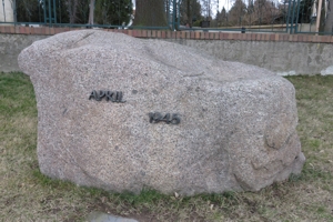 Vor dem Friedhof, direkt an der Straße, liegt ein großer Stein mit der Inschrift „April 1945“. Auf dem Friedhof steht eine