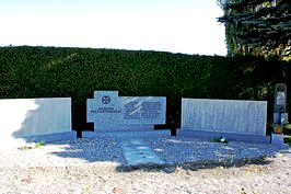 Im Friedhof; dreiteilige Gedenkwand, im Bogen gestaltet