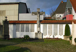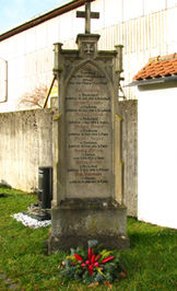 der Feldzugsteilnehmer sowie der Gefallenen von 1866 und 1870/71. Daneben steht eine steinerne Skulptur des Gekreuzigten,