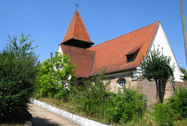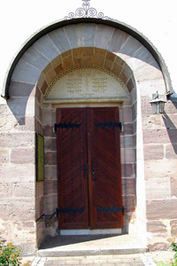 Die Namen der Gefallenen des 1. Weltkriegs sind über dem Portal der Kirche verzeichnet.