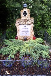 48.58937; 16.57071 Gedenkstein mit Tafel, an der Spitze Wehrmachtshelm, und darunter ein Eisernes Kreuz