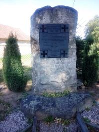 Behauener Felsstein mit aufgesetzter Tafel.