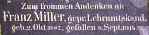 Gelieben auf dem Felde der Ehre in der Schlacht von Sedan; dahier begraben am 17 Januar 1871. „Die Artillerie-Offiziere vom 1. bayr. Armeekorps ihrem unvergesslichen Kameraden”