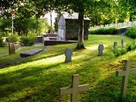 Neben dem Gebäude am Eingang liegen zwei große Gemeinschaftsgräber für deutsche Soldaten (mit weiteren 62 sowie 44