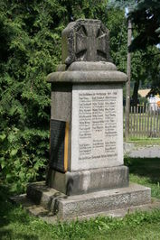 Stele mitten im Ort für die Gefallenen des 1. Weltkrieges, ergänzt mit Tafeln