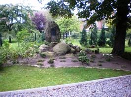 Das Denkmal befindet sich auf dem privaten Eckgrundstück der Straße