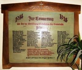 Zur Erinnerung an die im Weltkriege gefallenen der Gemeinde Pila (Namen) Völkerhader sei gemieden,