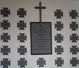 In der Kirche befinden sich Tafeln und Inschriften für die Gefallenen der beiden Weltkriege