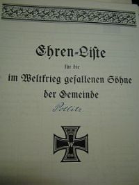 Ehrenliste für die Gefallenen des 1. Weltkriegs