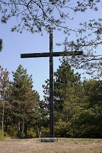 Beim Hochkreuz: Auf diesem Friedhof ruhen 787 deutsche Soldaten 1939 – 1945 29 österreichisch-ungarische Kriegstote 1914 – 1948 und 61 Kriegstote verschiedener Nationen 1939 – 1945