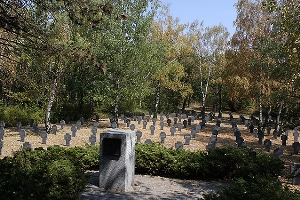 Am Gedenkstein: Dieser Soldatenfriedhof wurde vom Österreichischn Schwarzen Kreuz Kriegsgräberfürsorge und dem Volksbund Deutsche Kriegsgräberfürsorge in Zusammenarbeit mit dem Bundesministerium für Inneres, dem Land Niederösterreich und der Stadtgemeinde Retz im Jahre 1979 errichtet.