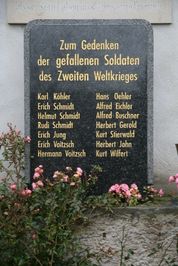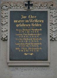 Zur Ehre unserer im Weltkrieg gefallenen Helden (Namen) Niemand hat grössere Liebe, denn die, dass er