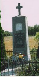 Ein hoher Sockel auf dem sich ein kleines Kreuz befindet. Auf der Vorderfront sind zwei Marmortafeln angebracht.