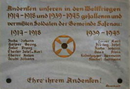 Andenken unseren in den Weltkriegen 1914-1918 und 1939-1945 gefallenen und vermißten Soldaten der Gemeinde Safenau: