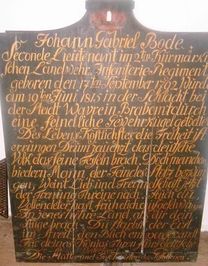 seinen Feldzug hier in Schackensleben an Brustschaden selig gestorben den 7ten Sep.1817 hat sein ruhmvolles Leben gebracht auf